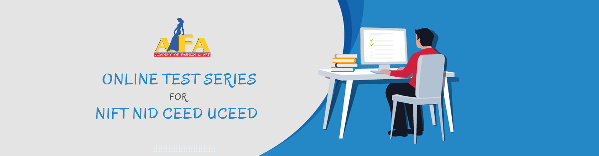 Therefore, you see, if you are looking for a good online test series, you can always rely on the Academy of Fashion and Art. Our Practice Question Papers on NIFT & NID are carefully compiled by our experienced faculty members for your NIFT and NID preparation. We have a Mock Test Series for individual exams like the NIFT Online Test series and NID Online Test Series. We also ensure that you do not waste your valuable time in searching for the Previous Year’s Question Papers. Our Online Test Series include NIFT Previous Year’s Question Papers and NID Previous Year’s Question Papers along with Practice Test Papers for other Design Exams as well.